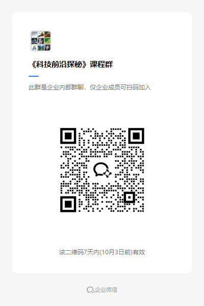 2.请选课学生扫码加入课程企业微信,群内会发布课程相关信息。其他同学如有疑问也可加群咨询。如企业微信二维码失效,可加QQ群(130633583)。